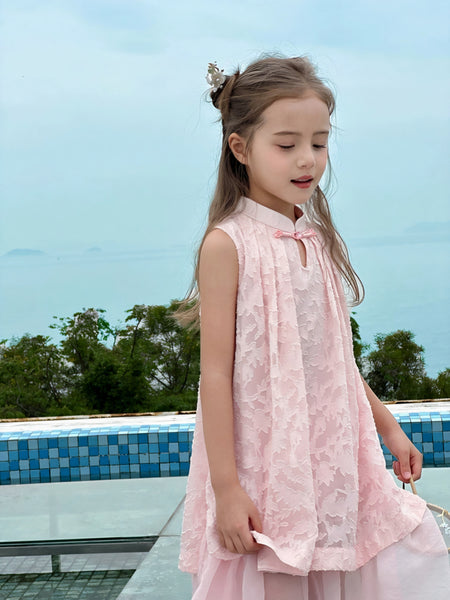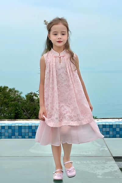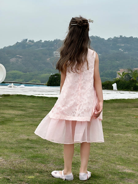 Layered fabrics and refined detailing bring a luxurious yet sweet finish to the look. Features back zip closure.